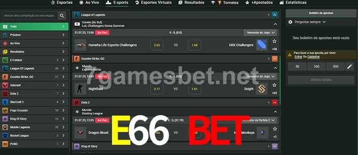 O E66 Bet oferece uma grande seleção de opções de apostas em e-sports com probabilidades competitivas